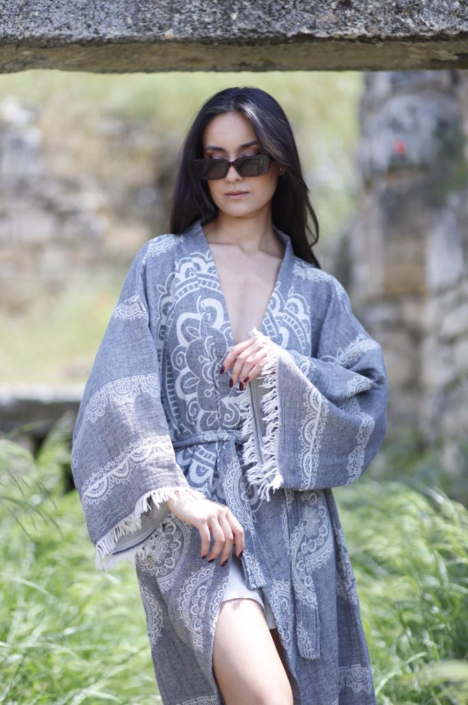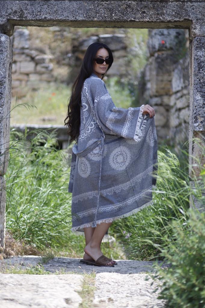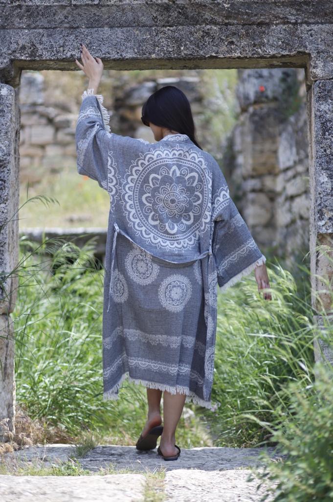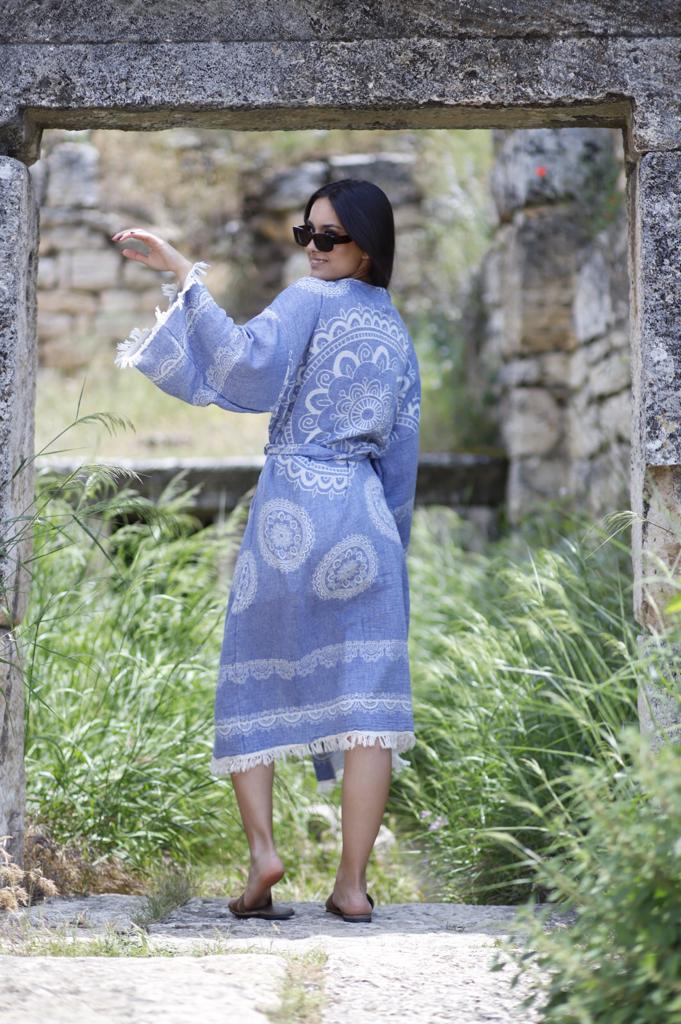 - Doğal pamuk ipliklerinden üretilen peştemal bornoz, hafif ve nefes alabilen yapısıyla banyo sonrası konforu yeniden tanımlar.